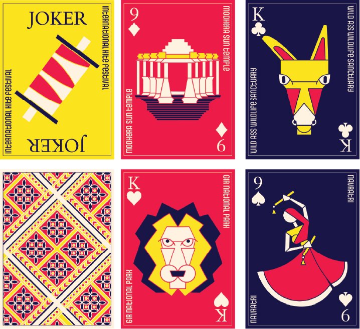 Promoting Gujarat tourism through the medium of illustrations in a game of cards. These serve as interactive and appealing means to spark interest in the land of Gujarat and can double as an affordable, easy to carry, unique souvenir.